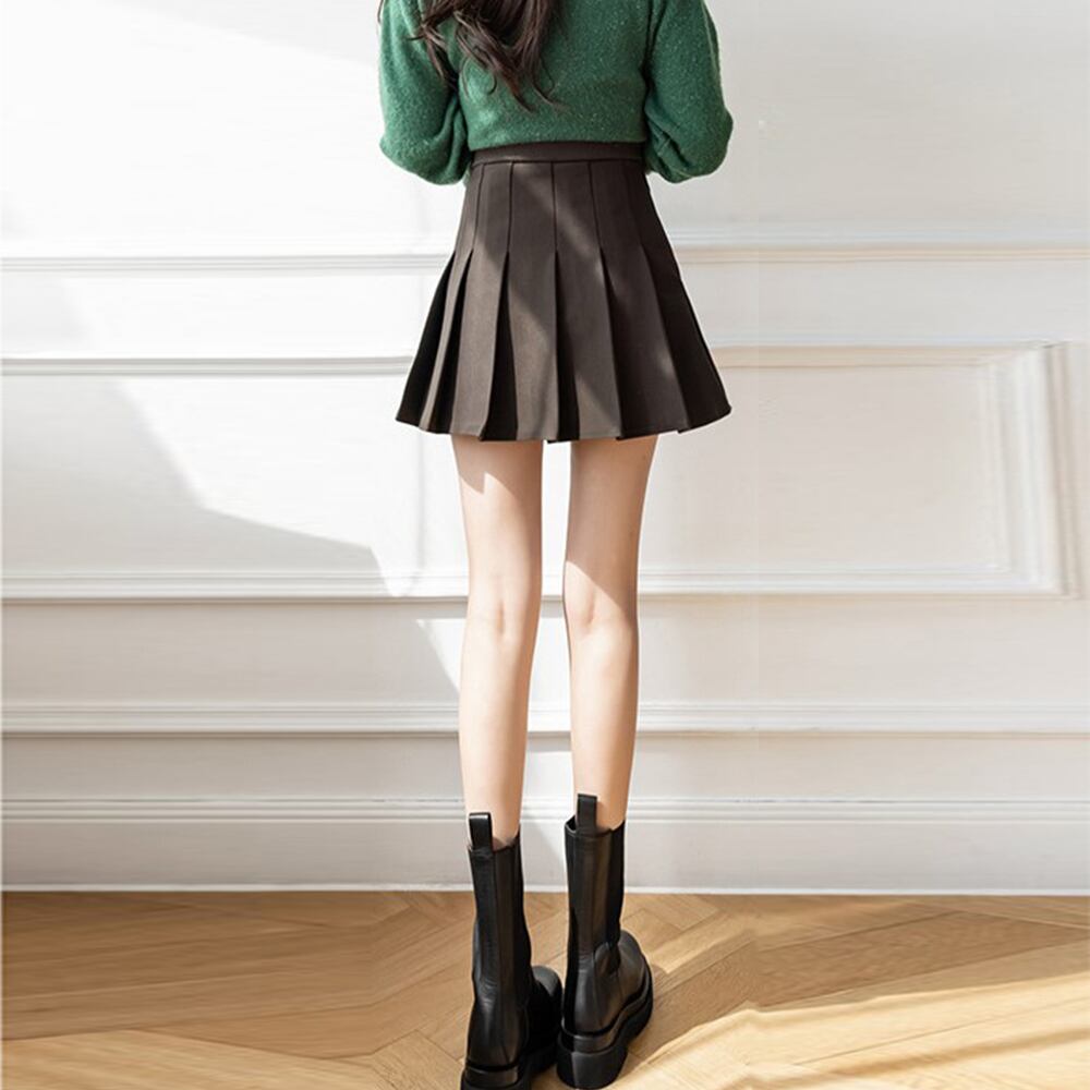 レディース 可愛い ボックススカート 膝上丈 インナーパンツ付き ウール調Aラインスカート 着やせ オルチャン ミニスカ
