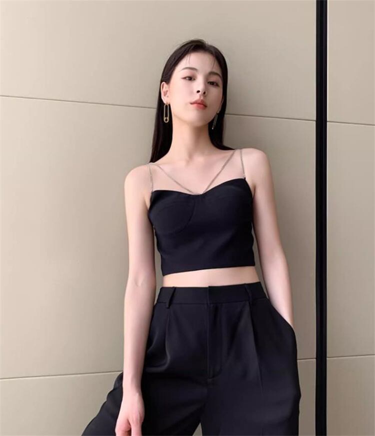 リピーター多数! ギャル トップス トレンド ベアトップ スリム チェーン キャミソール 大人気 ベスト