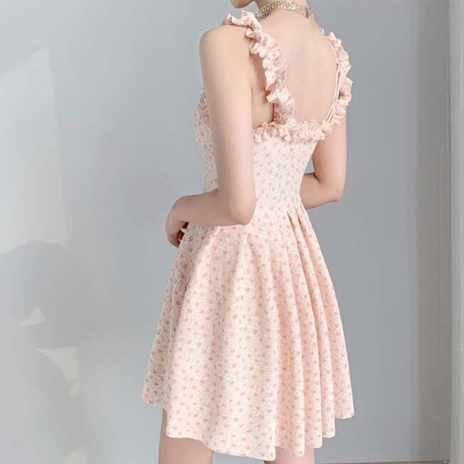 ・肩紐と胸元のラインのフリルがフェミニンさを演出。