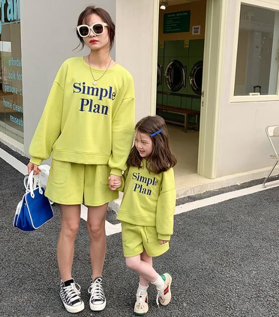 春夏新作★親子服★子供/レディース★キッズ服★長袖 スウェット+ショットパンツ★