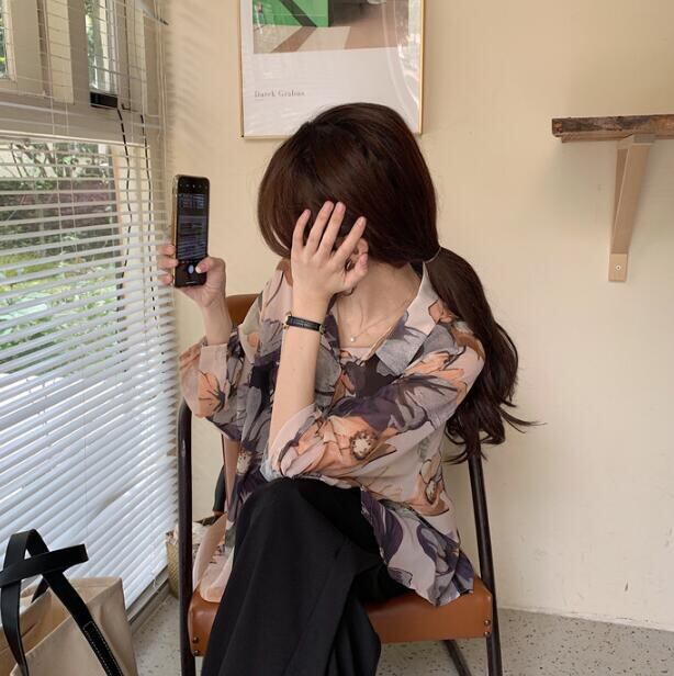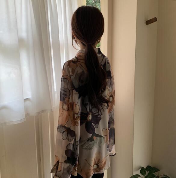 トップス★♪長袖★♪シフォンシャツ♪★♪レディース服上着★♪花柄★S-XL