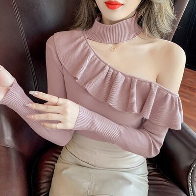 レディース服★♪ファッション★♪無地★♪トップス★♪セクシー露肩★♪ニット★♪修身★♪長袖 ★♪4色