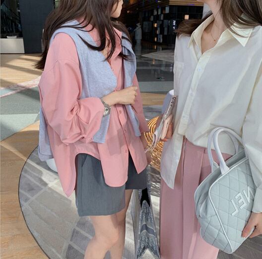 春夏新作 トレンド ベーシック シャツ カラー 襟 長袖 着回し OL ブラウス オンオフ