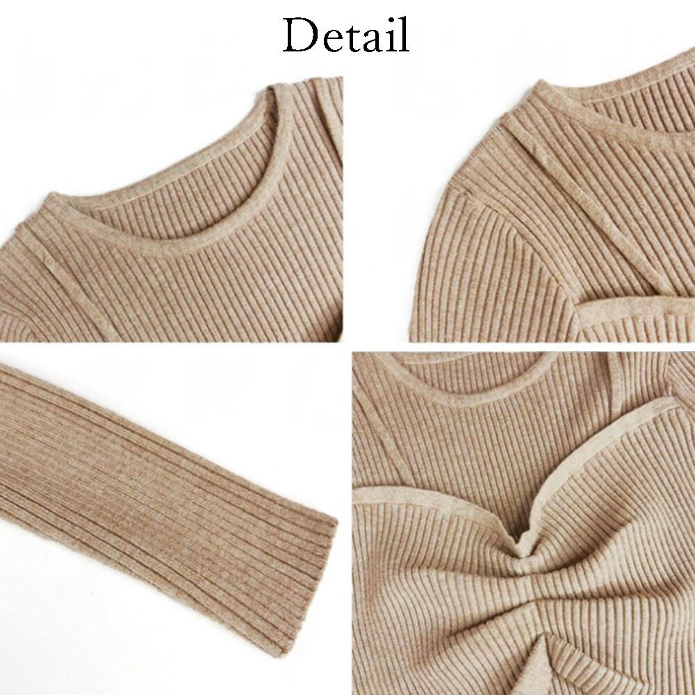 タイトトップス レディース リブニット リボン ニットソー 無地 プルオーバー ニットセーター 大人可愛い