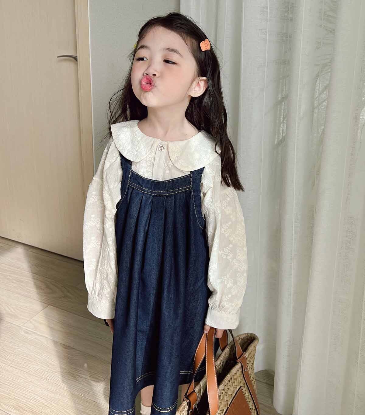 ★ワンピース★韓国子供服 子供 キッズ ワンピース ブラウス 花柄 ホワイト 襟 デニム かわいい 女の子セット